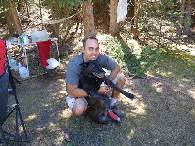 The gimpy dog came along on most of the hike. She wasn't supposed to, given her cast and bum foot, but she's hard to resist when she's begging...
